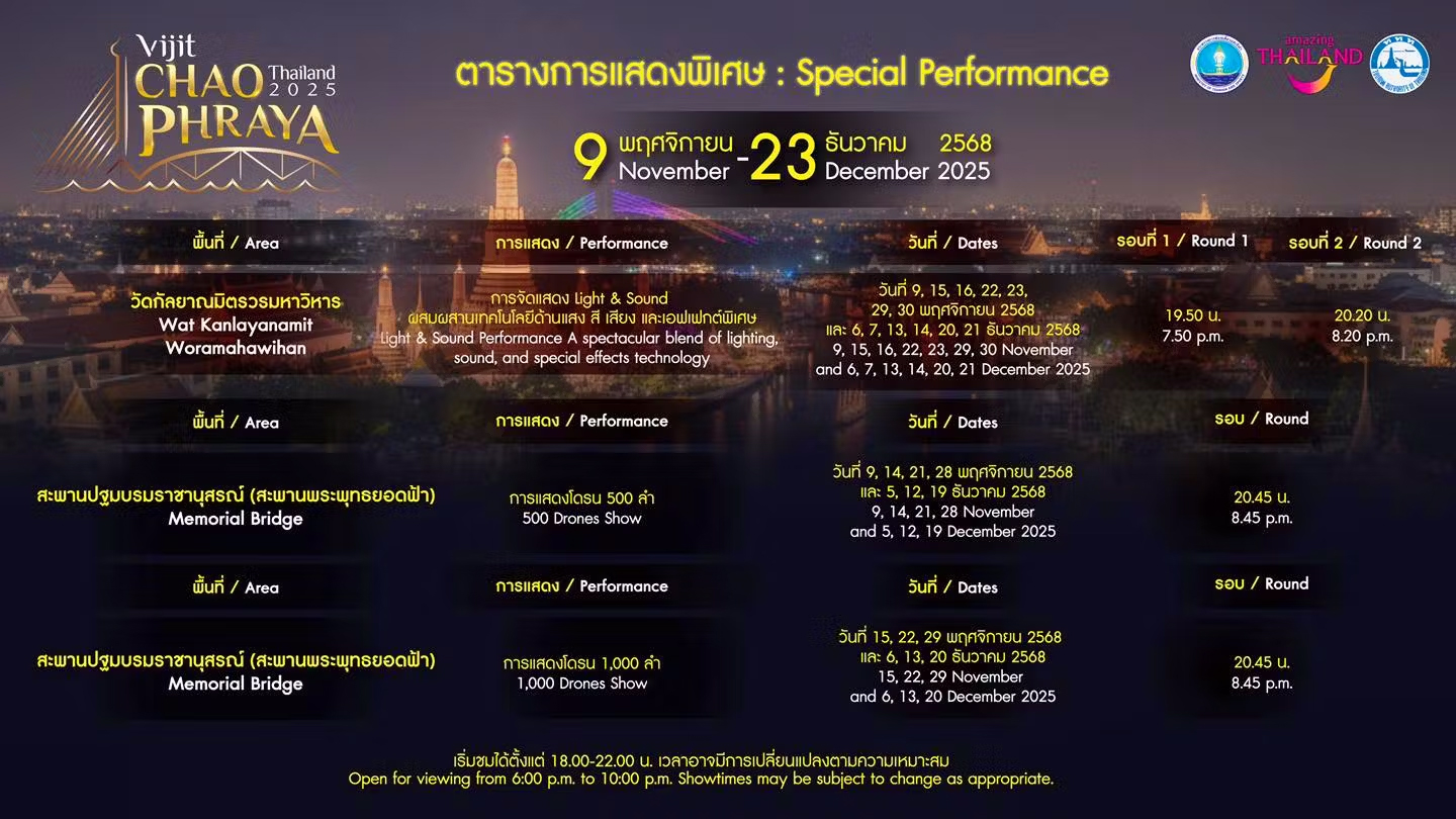 Book Now! Experience “Vijit Chao Phraya 2025” – The Light of Siam, honoring the Mother of the Land along the Chao Phraya River. Organized by the Tourism Authority of Thailand (TAT).