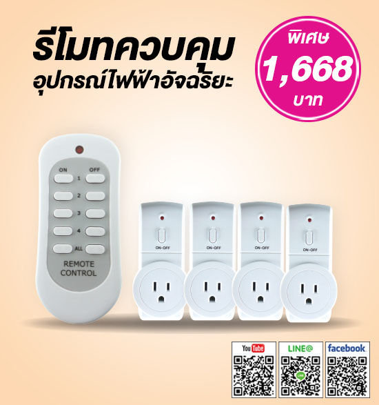 รีโมทควบคุมอุปกรณ์ไฟฟ้าอัจฉริยะ 4 ตัวพร้อมรีโมท