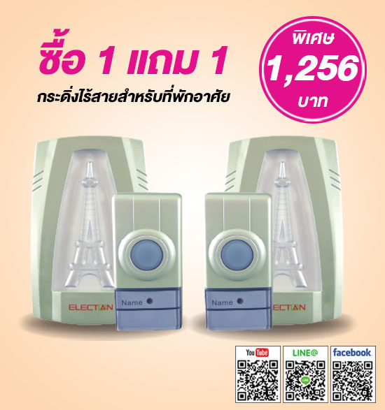 กระดิ่งไร้สายสำหรับที่พักอาศัยกด 1 ที่ ดัง 2 ที่ เพิ่มรหัสได้