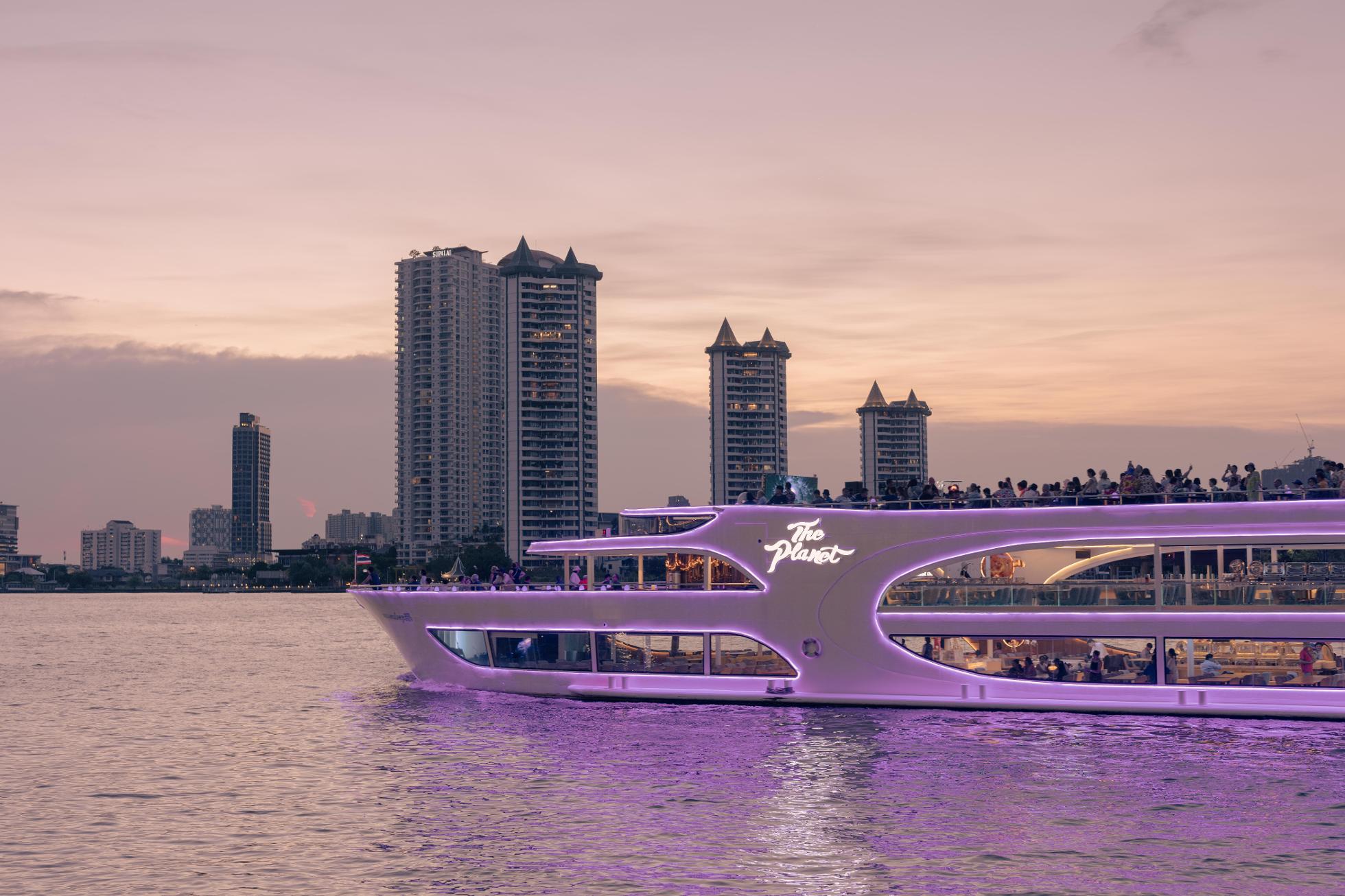 Cruise along Chao Phraya River with The Planet Cruise Surrounded by romantic atmosphere of Bangkok night while having international buffet. Entertained by live music and traditional dance. Come to create a memorable night with your loved ones.